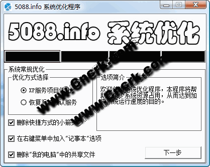 歡迎使用系統(tǒng)優(yōu)化程序,本程序?qū)椭鷾p少系統(tǒng)資源占用,從而達(dá)到加快系統(tǒng)運(yùn)行速度目的