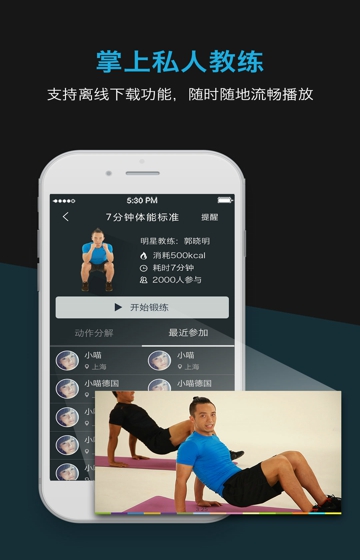 1、7分鐘體能基礎(chǔ):柔韌平衡力量練習(xí)等組成的基礎(chǔ)體能課程;2、7分鐘體能提高:動(dòng)態(tài)平衡心肺練習(xí)等組成的體能提高課程;