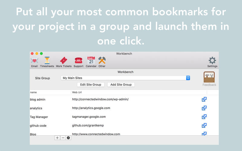 WorkbenchMac版可以幫助用戶整理所有項(xiàng)目的網(wǎng)絡(luò)鏈接和書(shū)簽進(jìn)入網(wǎng)站時(shí)得心應(yīng)手。直接從瀏覽器,F(xiàn)irefox和Safari新的網(wǎng)站,由站點(diǎn)拖動(dòng)到工作臺(tái)dock欄圖標(biāo)添加鏈接。為您的網(wǎng)絡(luò)郵件,日歷,你訪問(wèn)的所有時(shí)間可自定義的菜單快捷方式。WorkbenchMac版的導(dǎo)入和導(dǎo)出站點(diǎn)可以給別人很容易地共享和協(xié)作。我們用它可以很容易地保存我們的最常用的網(wǎng)站,在工作之間隨意切換和調(diào)用。