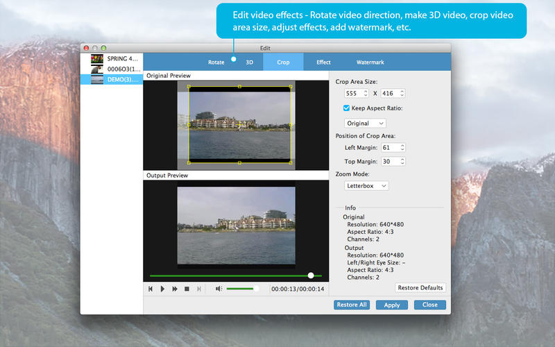 5、自由編輯M2TS視頻效果。你可以調(diào)整亮度,輸出的影響飽和度/對(duì)比度、修剪視頻的長(zhǎng)度,作物的屏幕尺寸和添加水印的需要。