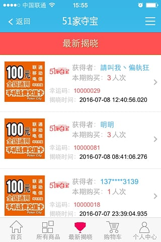 51家奪寶app是一款現(xiàn)在十分流行的一元奪寶購物平臺,這里有豐富的精品商品等你搶購,每樣商品你只需要花費一元就可以有機(jī)會購買,人人的機(jī)會都是一樣的,看好運是否會降臨到你的頭上。