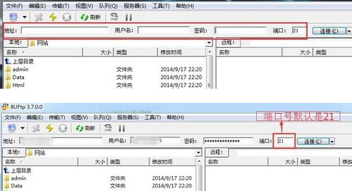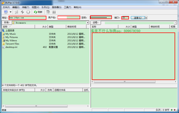 運行該ftp上傳軟件,然后分別在“地址”、“用戶名”、“密碼”輸入你知道的信息。端口號默認是21。根據(jù)別人提供給你的信息填寫!