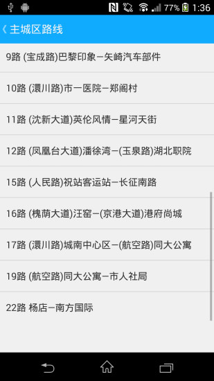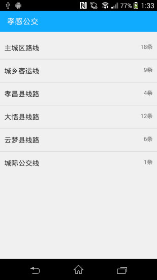 查詢:提供孝感地區(qū)公交線路查詢,公交換乘,實時公交等信息。線路:提供所有公交線路信息,包括所有站點信息以及所在線路上的實時公交位置數(shù)據(jù)。