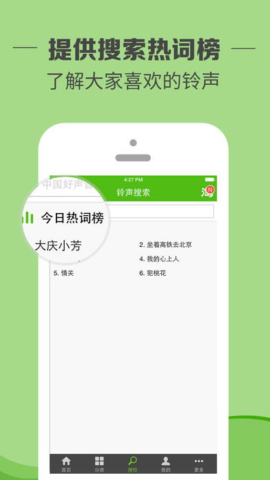精心分類,幫你快速找到頑皮的它--最新鈴聲、熱門鈴聲、鈴聲排行榜、精選頻道,你要找到,這里都有,你不要找的,在這里也會有意外驚喜;
