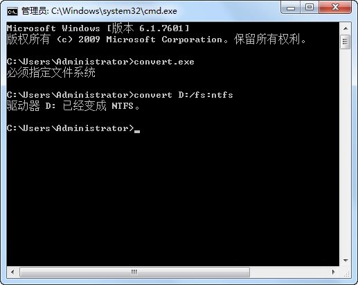 注明:如果你想將C盤轉(zhuǎn)換成NTFS,輸入“convert c: /fs:ntfs”即可。如果你想將D盤轉(zhuǎn)換成NTFS,輸入“convert d: /fs:ntfs”即可。如果你想將E盤轉(zhuǎn)換成NTFS,輸入“convert e: /fs:ntfs”即可。類推...