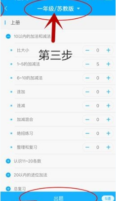 2、在這里你需要選擇年級和教材,點擊你想出的知識點,選擇出題數(shù)量,點擊“出題”后,仍可編輯題目數(shù)量,注意要選擇清楚,不要出錯哦。
