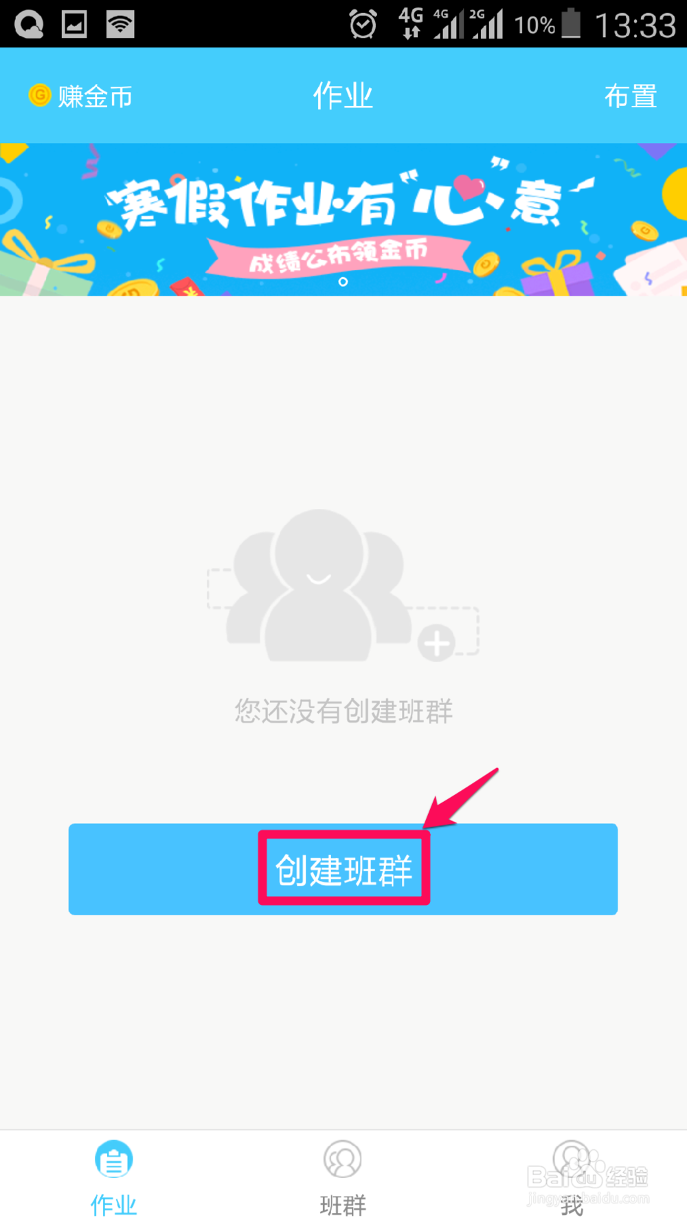 注冊完成后,自動登錄進入主界面,點擊“創(chuàng)建班群”。如圖所示: