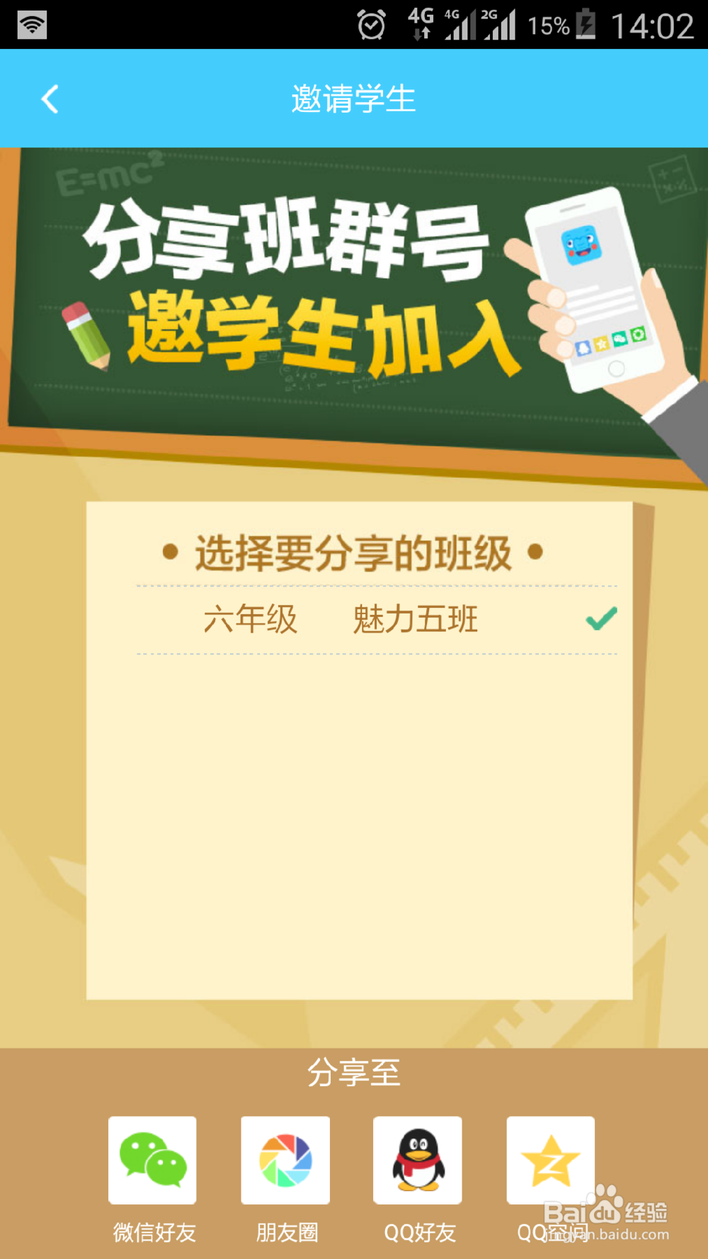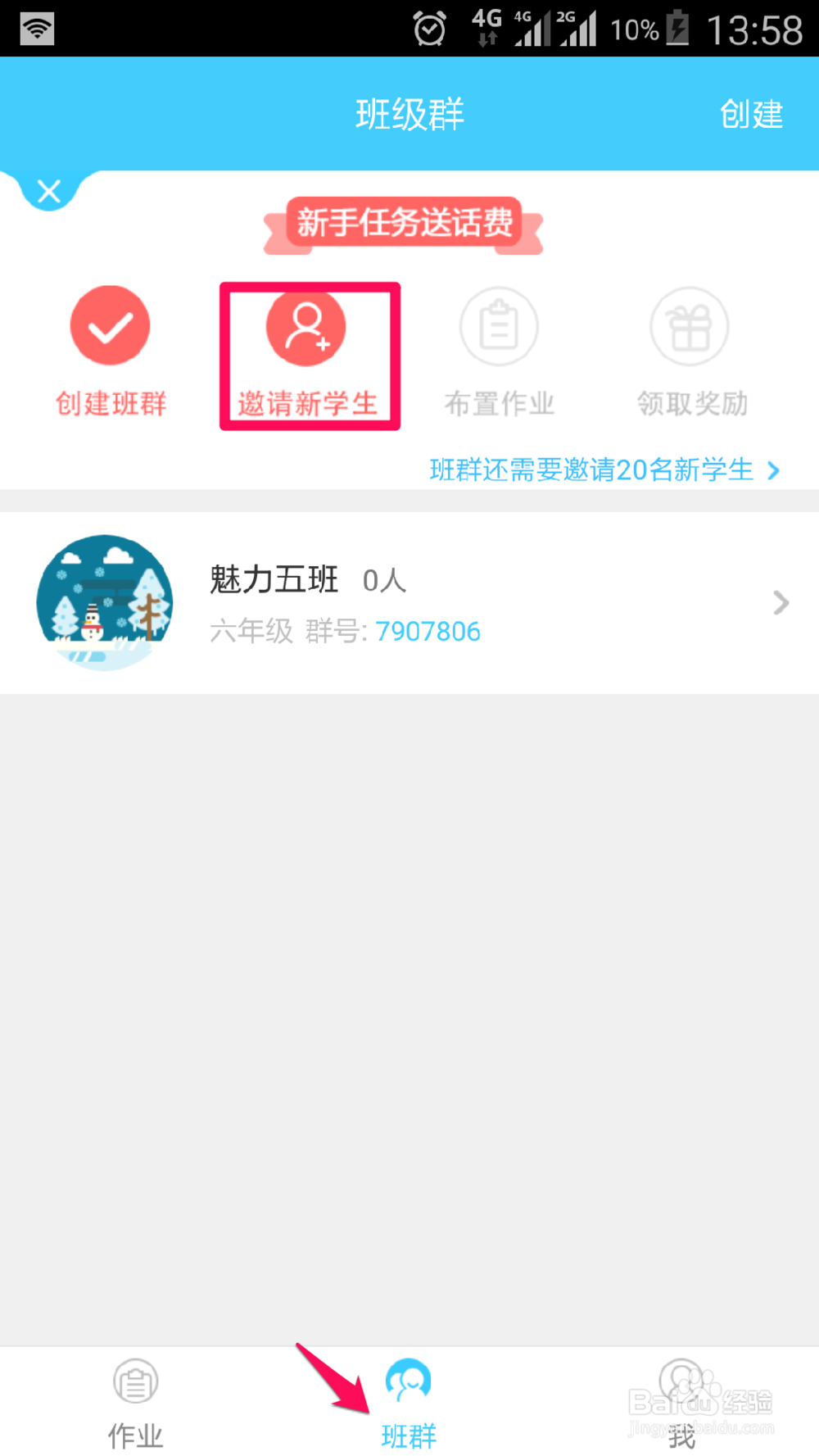 切換到“班群”選項卡,就可以看到所創(chuàng)建的群組,點擊“邀請新學生”就可以邀請成員加入了。