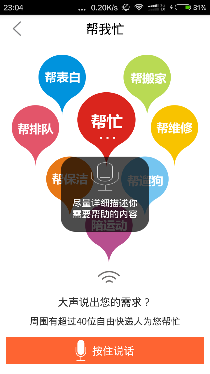 幫買幫送服務(wù):動(dòng)動(dòng)手提供互幫互助的理念,對(duì)于用戶所需的同城特產(chǎn)的代買、幫買、幫送、代送以及其他幫忙以及急件等加急的服務(wù),均可享受動(dòng)動(dòng)手平臺(tái)為您提供的高效、極速、優(yōu)質(zhì)的星級(jí)服務(wù)。