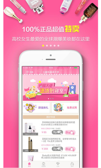 1.【限時特賣】100%真實爆款美妝,低至1折,官方補貼,0元免郵!2.【免費試用】校園大使1對1服務(wù),上門試用,還能免費化妝哦!