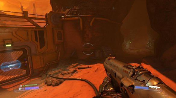 如果你成功進(jìn)入《毀滅戰(zhàn)士》隱藏房間,并且將鏡頭視角調(diào)整到正確的角度,你會(huì)看到《毀滅戰(zhàn)士》初代的太空大兵主角顯示在你頭盔里。