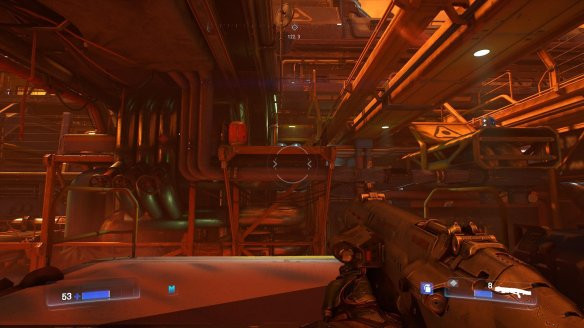 5,返回到高處,跳到右邊的平臺(tái)去,在洞口就能看到無(wú)人支援機(jī),從它身上得到強(qiáng)化武器的部件,裝備上后你的霰彈槍能通過(guò)右鍵蓄力得到更強(qiáng)大的攻擊方式。