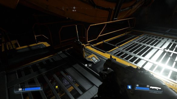 1,從初始地出來(lái)由于沒(méi)有電力,所以是一片漆黑,進(jìn)入升降梯區(qū)域,清理怪物,然后想左邊走,拉開(kāi)左邊的門(mén),去里面恢復(fù)電力。
