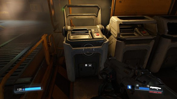 對(duì)著電源控制器點(diǎn)E給設(shè)施內(nèi)使用備用電源(激活電源的時(shí)候奧利薇雅那個(gè)老娘們的影像會(huì)從旁邊的屏幕上會(huì)跳出說(shuō)一些利用惡魔來(lái)為人類創(chuàng)造新世界的大話),然后反過(guò)身能看到一個(gè)正好能跳上的通道,從通道內(nèi)得到一個(gè)護(hù)甲,即為發(fā)現(xiàn)秘密1/8.