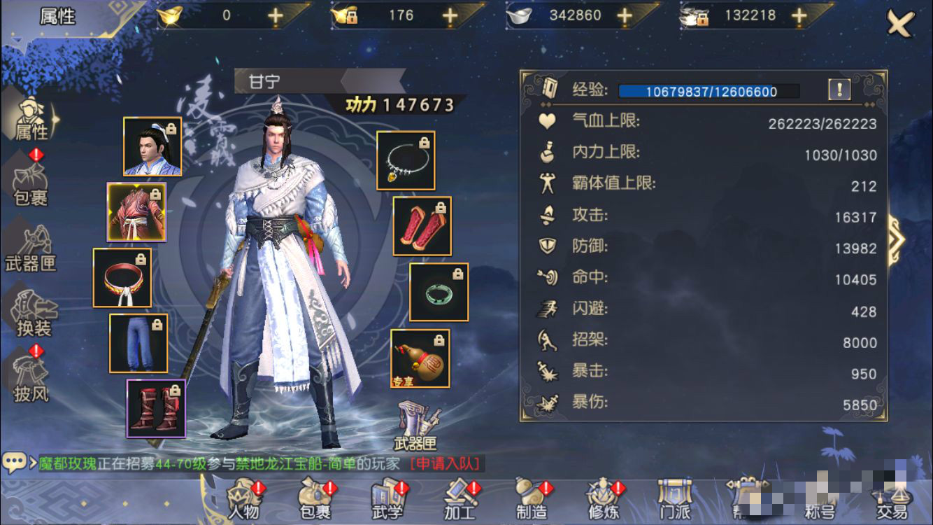 首先對(duì)于戰(zhàn)斗力至關(guān)重要的三樣?xùn)|西,內(nèi)功,武學(xué)和等級(jí),這三個(gè)是最有用的,至于鍛造,加護(hù),開光,建議大家每天做做任務(wù)慢慢升就好。還有一點(diǎn),內(nèi)功分很多種,只能同時(shí)帶三個(gè),但是只要你學(xué)會(huì)了,就會(huì)增加屬性,也就是說(shuō)內(nèi)功和武學(xué)都是越多越好。