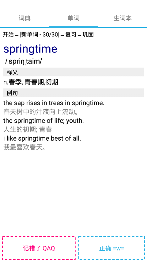 *生詞本中的單詞會(huì)在第二天進(jìn)行復(fù)習(xí)