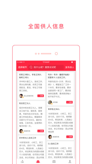 用勞務(wù)圈可以發(fā)布供人信息,發(fā)布招工信息,與供需方在線即時溝通。