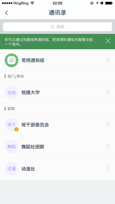 微哨,根據(jù)學(xué)校的情況,給不同類型用戶定義組織結(jié)構(gòu)樹;給不同用戶定義班級群、課程群、社團群等固定群組。微哨,數(shù)字化映射學(xué)校的社交關(guān)系。
