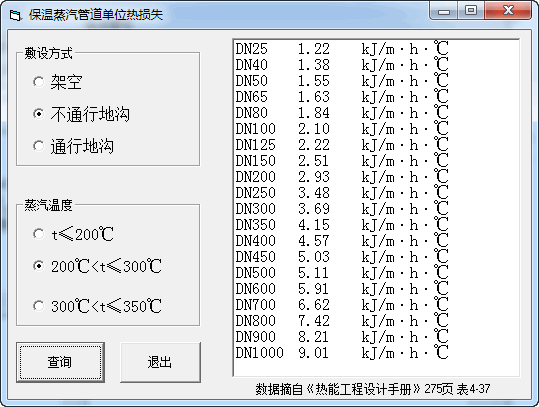 1.給出蒸汽溫度、壓力,可以自動判斷蒸汽屬于哪一個區(qū)域,如果屬于區(qū)域2、5過熱蒸汽和區(qū)域1不飽和水,自動計算蒸汽主要物性:比容、密度、比焓、定壓比熱2.給出蒸汽溫度、壓力、流量,點擊“選擇管徑”按鈕,根據(jù)流速計算出合適的管徑,如果沒有合適的管徑,給出最接近合適流速的管徑