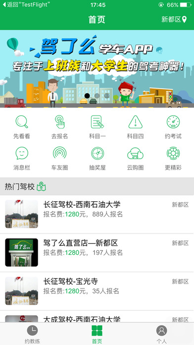 駕了么是由成都會(huì)當(dāng)網(wǎng)絡(luò)科技有限公司開發(fā)的一款針對(duì)有駕考、陪練需求人群的駕考服務(wù)平臺(tái)。駕了么以透明的學(xué)車費(fèi)用、高效的服務(wù)機(jī)制、自由的學(xué)車安排為特色,培訓(xùn)內(nèi)容簡(jiǎn)單、直接、效率高,訓(xùn)練項(xiàng)目直面考試。駕了么致力于打造以互聯(lián)網(wǎng)為支撐,以駕考資源為依托的新“互聯(lián)網(wǎng)+駕培”模式,努力為用戶提供便捷的駕考服務(wù),營(yíng)造健康公平的駕培行業(yè)生態(tài)環(huán)境。