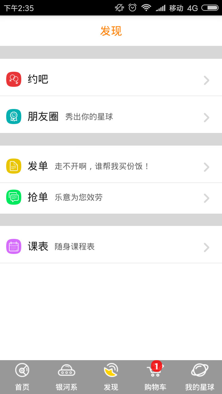 2、約吧可以實現(xiàn)校園活動的發(fā)布與征集;朋友圈可以發(fā)布自己的故事并觀察別人的日常故事;發(fā)單可以發(fā)布自己的需求,搶單可以完成別人的需求并獲取一定的傭金。