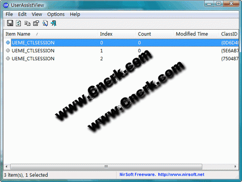這個(gè)工具解密并顯示儲(chǔ)存在注冊(cè)表中的 HKEY_CURRENT_USER\Software\Microsoft\Windows\CurrentVersion\Explorer\UserAssist 所有的信息 .UserAssist 鍵主要包含你經(jīng)常打開的EXE文件信息和鏈接。你能導(dǎo)出列表,存成 text/html/xml/csv 文件,你也可以刪除不需要的項(xiàng)目。
