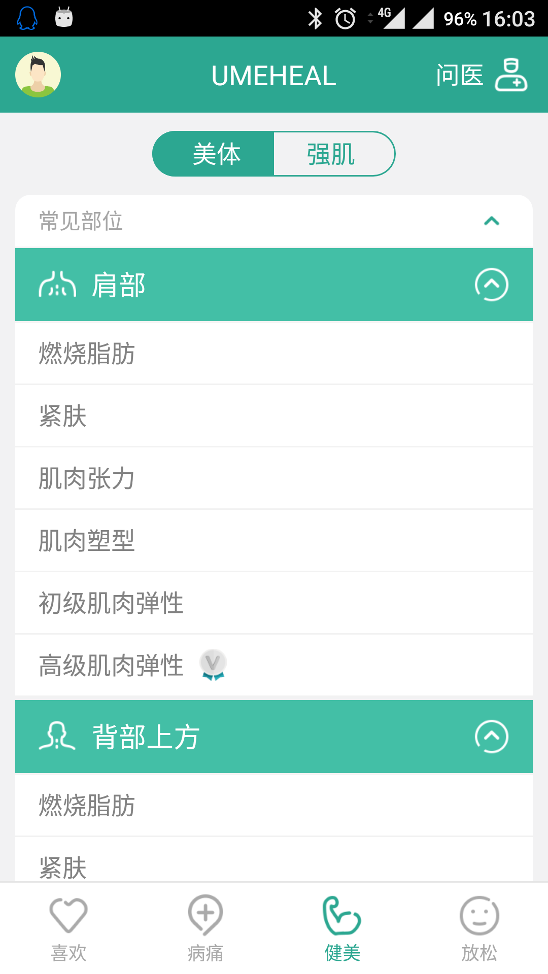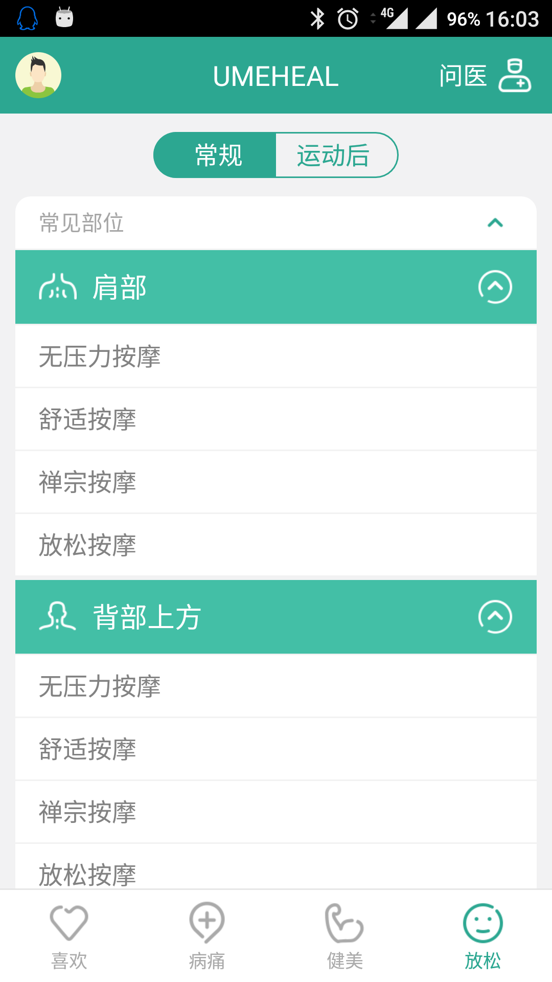 1、3大功能版塊優(yōu)摩師APP由三甲醫(yī)院的醫(yī)生專家、專業(yè)按摩大師及健身教練合作開發(fā),主要有緩解疼痛、健身媒體、放松按摩三大功能版塊。
