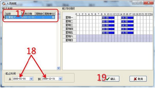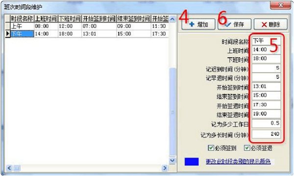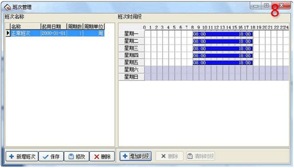 4、設(shè)置班次時(shí)間段(進(jìn)入班次時(shí)間段維護(hù))