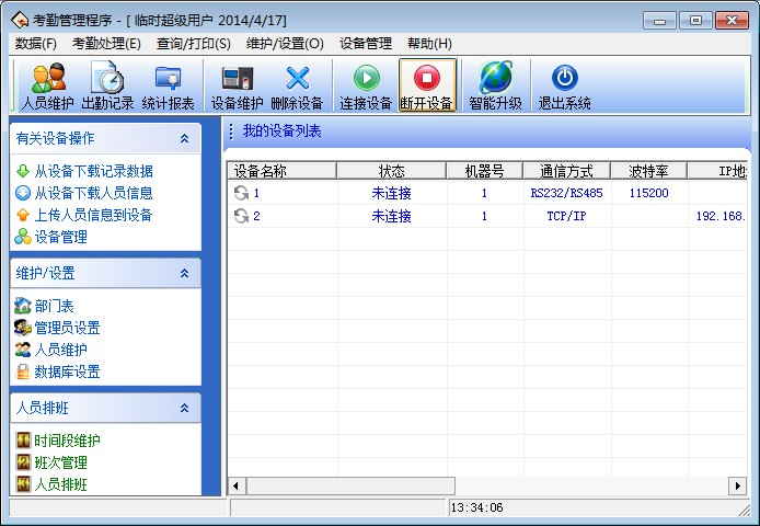 7、將設(shè)備上的考勤數(shù)據(jù)下載至軟件中(連接設(shè)備-從設(shè)備下載記錄數(shù)據(jù))