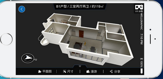 最特別的是,當你選擇戶型并點擊漫游時,便可身臨其境進入到房子中,并且無需帶眼鏡。