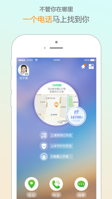 借助定位功能,來對孩子上學(xué)和放學(xué)的過程實現(xiàn)全面守護,主動告知家長孩子什么時候到校,有沒有遲到,什么時候離校,有沒有逗留,有沒有按時回家等。