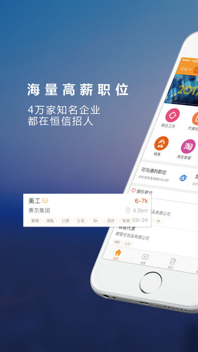 恒信人才是一款小巧的掌上招聘求職應(yīng)用。這里每天都會(huì)發(fā)布最新鮮、熱度最高的求職信息,根據(jù)自動(dòng)定位系統(tǒng),自動(dòng)的區(qū)分并推薦相應(yīng)的崗位給用戶,幫助用戶快速找到合適的崗位。