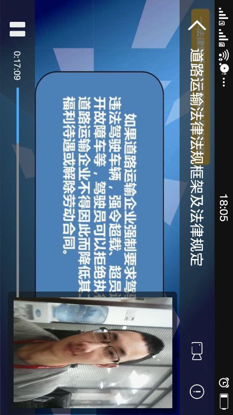本軟件服務(wù)對象為取得從業(yè)資格證且在崗營運(yùn)的道路客貨運(yùn)輸駕駛員。通過軟件可以在線學(xué)習(xí)包括《道路客貨運(yùn)輸駕駛員繼續(xù)教育大綱》要求的9個(gè)模塊的所有內(nèi)容,具體包括道路運(yùn)輸相關(guān)法律、法規(guī),職業(yè)道德,職業(yè)心理和生理健康,車輛使用,行車危險(xiǎn)源辨識(shí)與防御性駕駛,應(yīng)急處置,節(jié)能減排等。【更新日志】