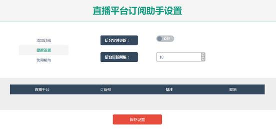 3、點擊左側(cè)“提醒設(shè)置”,可以選擇是否后臺自動更新功能,還可以設(shè)置更新速度,時間單位為秒。開啟后臺自動更新提醒功能可能會占用一些內(nèi)存,每次設(shè)置完點擊“保存設(shè)置”按鈕,待瀏覽器重新打開后生效(添加訂閱號實時生效)。