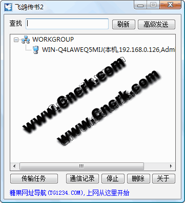 飛鴿傳書2是一款簡(jiǎn)單強(qiáng)大的局域網(wǎng)文件傳輸和聊天軟件,全面替代飛鴿傳書第1代。飛鴿傳書2操作非常簡(jiǎn)單易用,無需任何設(shè)置,也不需要任何服務(wù)器,就可以實(shí)現(xiàn)局域網(wǎng)內(nèi)的文件傳輸和聊天;同時(shí)支持向多個(gè)用戶發(fā)送消息和傳輸多個(gè)文件和文件夾;飛鴿傳書2特有右鍵發(fā)送和拖拽發(fā)送功能,方便快捷;飛鴿傳書2解決了飛鴿傳書第1代在無線信號(hào)比較弱時(shí),找不到用戶的問題。適用于各種公司企業(yè)、政府機(jī)關(guān)和事業(yè)單位等局域網(wǎng)。 軟件特點(diǎn):簡(jiǎn)單易用軟件操作簡(jiǎn)單,無需任何設(shè)置和服務(wù)器。在不能上因特網(wǎng)的情況下,也可以在局域網(wǎng)中傳輸文件右鍵發(fā)送支持文件和文件夾的右鍵發(fā)送超級(jí)拖拽支持文件和文件夾的拖拽發(fā)送。速度至上在100M的局域網(wǎng)內(nèi)最高可達(dá)11MB/S 綠色小巧軟件僅311KB,無需安裝即可運(yùn)行詳細(xì)日志可以查看詳細(xì)的聊天內(nèi)容和文件傳輸記錄