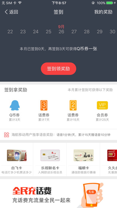 海航通信推出的移動(dòng)客戶端,可以實(shí)時(shí)掌握海航通信活動(dòng)訊息。每日隨時(shí)隨地享受簽到獲取資源,在您方便查詢資源余量的同時(shí)也可快速辦理相關(guān)業(yè)務(wù)。提供全民充服務(wù),支持移動(dòng)、聯(lián)通、電信充值話費(fèi)流量,更有優(yōu)惠活動(dòng)領(lǐng)取豐富獎(jiǎng)勵(lì)。搭建白拿商城,體現(xiàn)話費(fèi)升值的能量商城,提供存話費(fèi),送商品,到期話費(fèi)全額退的新型話費(fèi)白拿模式