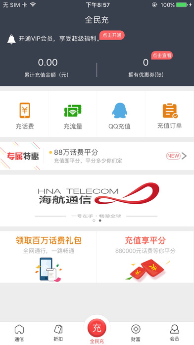 海航通信是一款移動(dòng)通訊服務(wù)軟件,這款軟件可為用戶提供移動(dòng)、聯(lián)通、電信三大運(yùn)營(yíng)商的話費(fèi)流量充值功能,并且還能隨時(shí)查詢到手機(jī)當(dāng)前的賬戶余額,為你的生活帶來(lái)極大的便利。