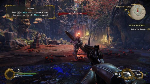游戲中的“殺戮資源”主要有兩種:武器和技能,武器系統(tǒng)很明顯借鑒了《無主之地》系列,可以說是整個游戲的最大亮點。玩家們在游戲中可以使用很多種武器,諸如武士刀、手槍、沖鋒槍、重型機槍、霰彈槍、榴彈發(fā)射器、弓箭和鏈鋸等等,這些武器可不是讓玩家們無腦瞎用的,在不同的場景下使用相應的武器非常重要。對付小型敵人使用威力大裝填時間久的重型武器無異于高射炮打蚊子,而使用小手槍對付血長攻高的大型BOSS效率極低,至于使用武士刀無腦砍……有的時候還真有奇效。