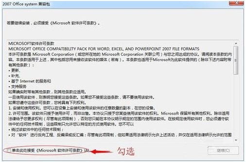 2、勾選接受條款,然后點(diǎn)擊“繼續(xù)”。