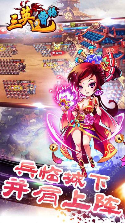 《三英逗曹操》是一款以曹操敗走華容道為切入點(diǎn)的三國題材大型Q版即時策略卡牌游戲。全球首創(chuàng)的多戰(zhàn)線作戰(zhàn)模式,宏大的千人戰(zhàn)場,新穎華麗的必殺技能,氣勢恢宏的國戰(zhàn)戰(zhàn)場。在這里,幾百名耳熟能詳?shù)娜龂麑⑷文心?;寶刀名馬無數(shù)奇珍異寶等您來拿;后宮佳麗三千任君采擷;兵種陣形隨您搭配;攻城掠地馳騁天下,文臣武將助你成就霸業(yè)。【游戲特色】