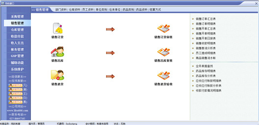 1、基本功能:智能訂貨、進(jìn)貨入庫(kù)、進(jìn)貨退回、銷(xiāo)售出庫(kù)、銷(xiāo)售退貨、報(bào)損、報(bào)溢、調(diào)入、調(diào)出、收款、付款、預(yù)收、預(yù)付、收入、支出、成本、利潤(rùn)及財(cái)務(wù)會(huì)計(jì)核算等。