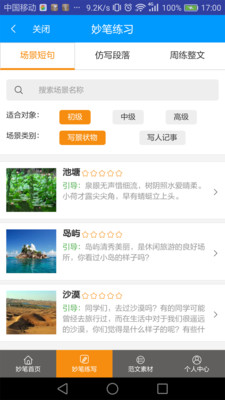 妙筆作文是學(xué)生寫作的掌上寶典,提供緊扣考綱的作文提高培訓(xùn),體系化的名師作文教學(xué)精品課。配備有知識點(diǎn)視頻講解、課堂寫作能力練習(xí)、美文參考閱讀、技巧訓(xùn)練、作文一對一的批改、名師問答、課后閱讀等,幫助孩子快速提升作文水平,小學(xué)初高中皆為適用。