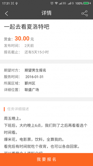 如果你有很多空閑時(shí)間,也可以到黃花樹報(bào)名其他用戶的賞金任務(wù),吃喝玩樂的同時(shí),還能賺到賞金哦。