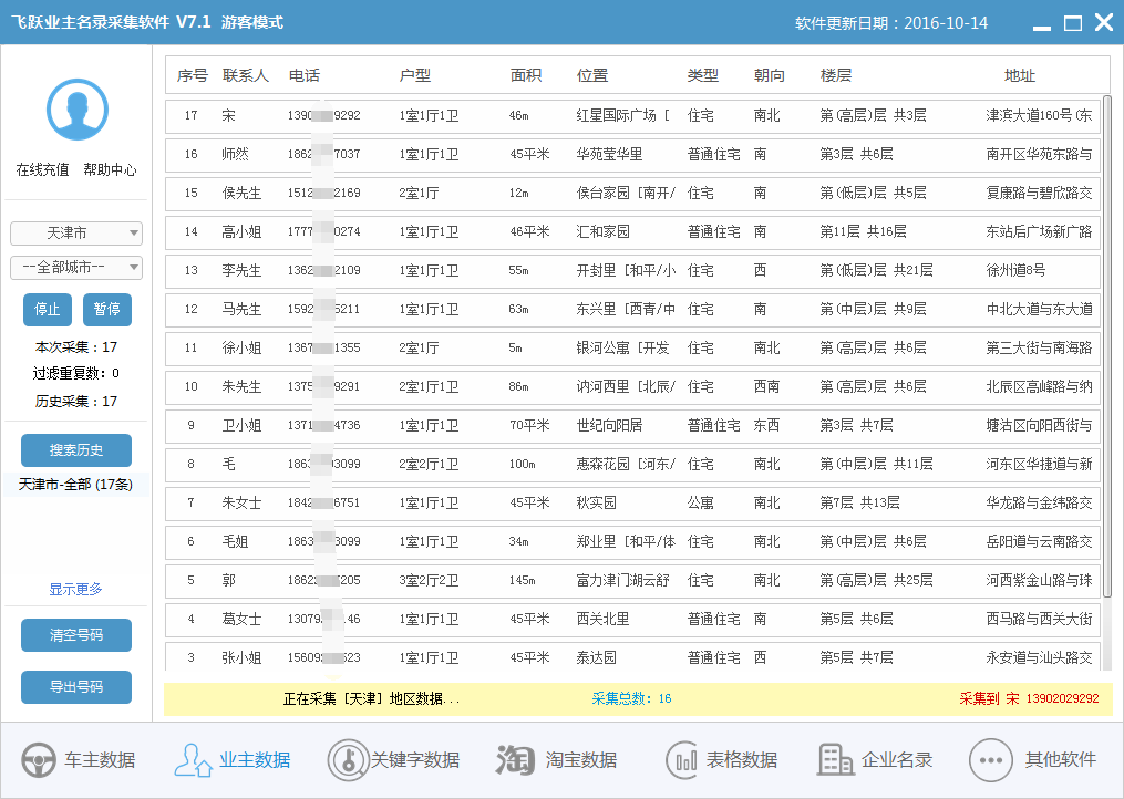 3、采集出來的信息網(wǎng)站源不同用戶類型也不同,屏蔽中介和商家自動過濾重復(fù),按地區(qū)采集不限制數(shù)量。