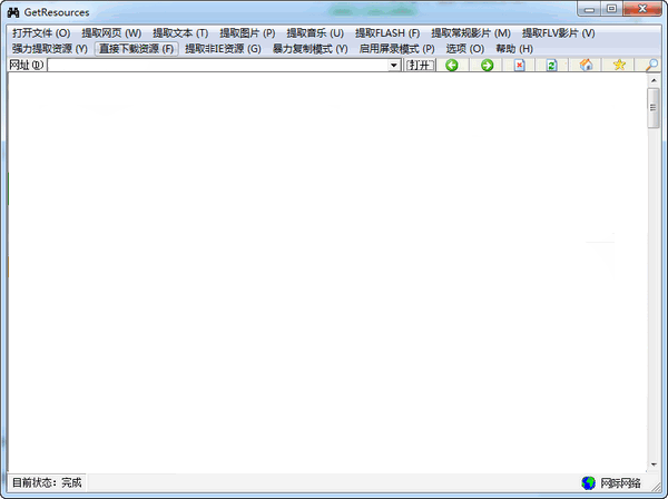 1、常規(guī)提取GetResources一網(wǎng)打盡的界面就象大家熟悉的IE界面,提取板塊分為網(wǎng)頁文字提取,F(xiàn)LASH提取,圖片提取,聲音提取,影片提取,F(xiàn)LV影片提取,非IE文件提取以及強(qiáng)力提取等八大部分。