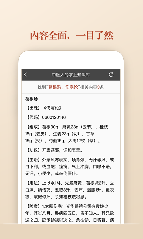 --簡便實用:支持按方名、功效、組成、出處查詢。