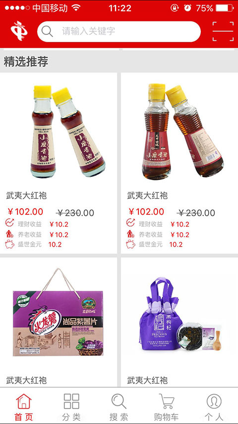 通過app購買商品后用戶可以獲得養(yǎng)老、理財(cái)、盛世金元等收益,推薦人可以獲得5%的收益。消費(fèi)可以投資.消費(fèi)帶來健康、消費(fèi)等于投資、消費(fèi)可以養(yǎng)老、消費(fèi)能夠增值、 消費(fèi)就是創(chuàng)業(yè)!