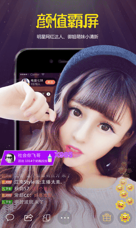 特邀眾多高顏值萌妹傾情加盟,更有麥霸,舞神,蘿莉,御姐,鮮肉,睿叔,知道嗎?有人陪伴的時光總是欣喜若狂,有人分享的快樂叫做幸福飛揚(yáng)。來,在這里我們一起品嘗!