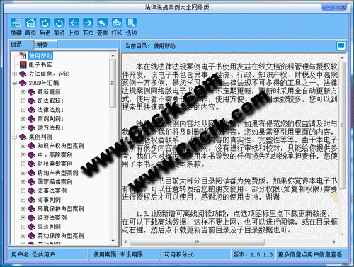 法律法規(guī)及案例大全網(wǎng)絡版 V1.5.1 簡體中文綠色免費版 本在線法律法規(guī)案例電子書使用友益在線文檔資料管理與授權(quán)軟件開發(fā),該電子書包含民事,經(jīng)濟、行政、知識產(chǎn)權(quán)、財稅及中高院案例一萬多例,是您學習、參照法律法規(guī)不可多得的工具之一。法律法規(guī)案例網(wǎng)絡版電子書會進行不定期更新,更新時采用全自動更新方式,使用者不需要任何操作,使用方便。由于目錄數(shù)較多,您可以到搜索里快速查找您需要的內(nèi)容