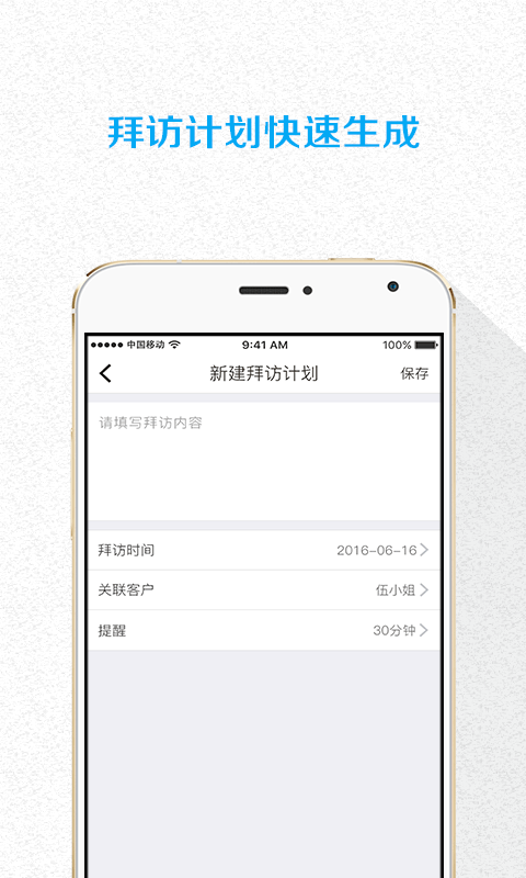 1、簡單快捷制定拜訪計劃,有效管理陌生客戶拜訪;2、開放式信息錄入,隨時添加碎片化的客戶信息;